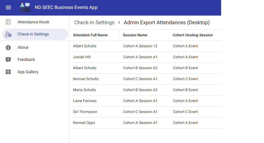 This application was created to address the various issues with utilizing Word Documents and Excel spreadsheets to keep track of attendants who attended sessions that were part of the hosted cohort events. The issue was, whenever there were sessions for the events, the attendants’ supervisors had to print out paper copies of the sign-up sheets for the day of the sessions of the events from both Word and Excel programs, which increases paper, printing, and electrical costs.